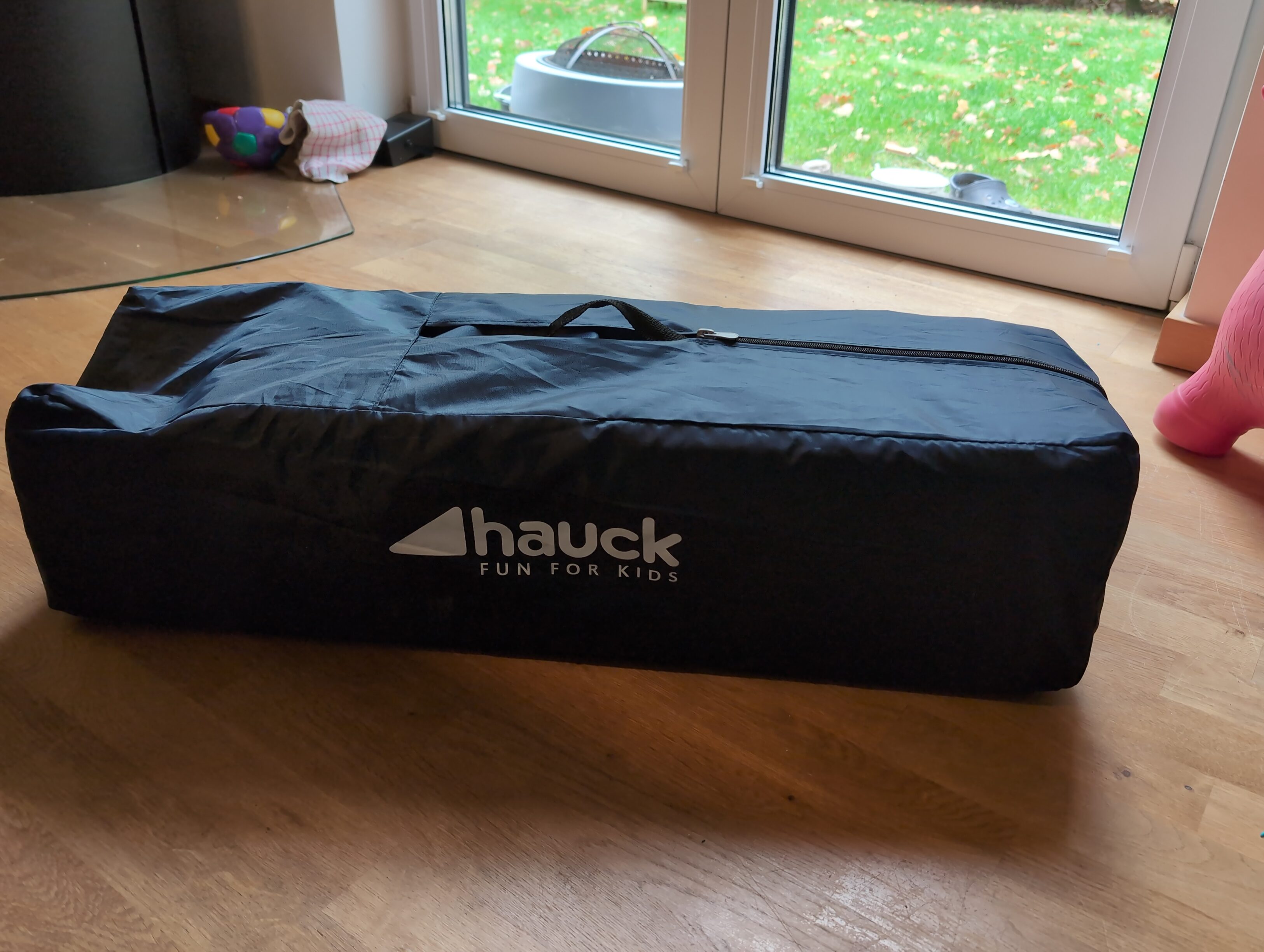 Hauk Reisebett Dream n Play in Navy Blau, nie benutzt, das Etikett ist noch dran.