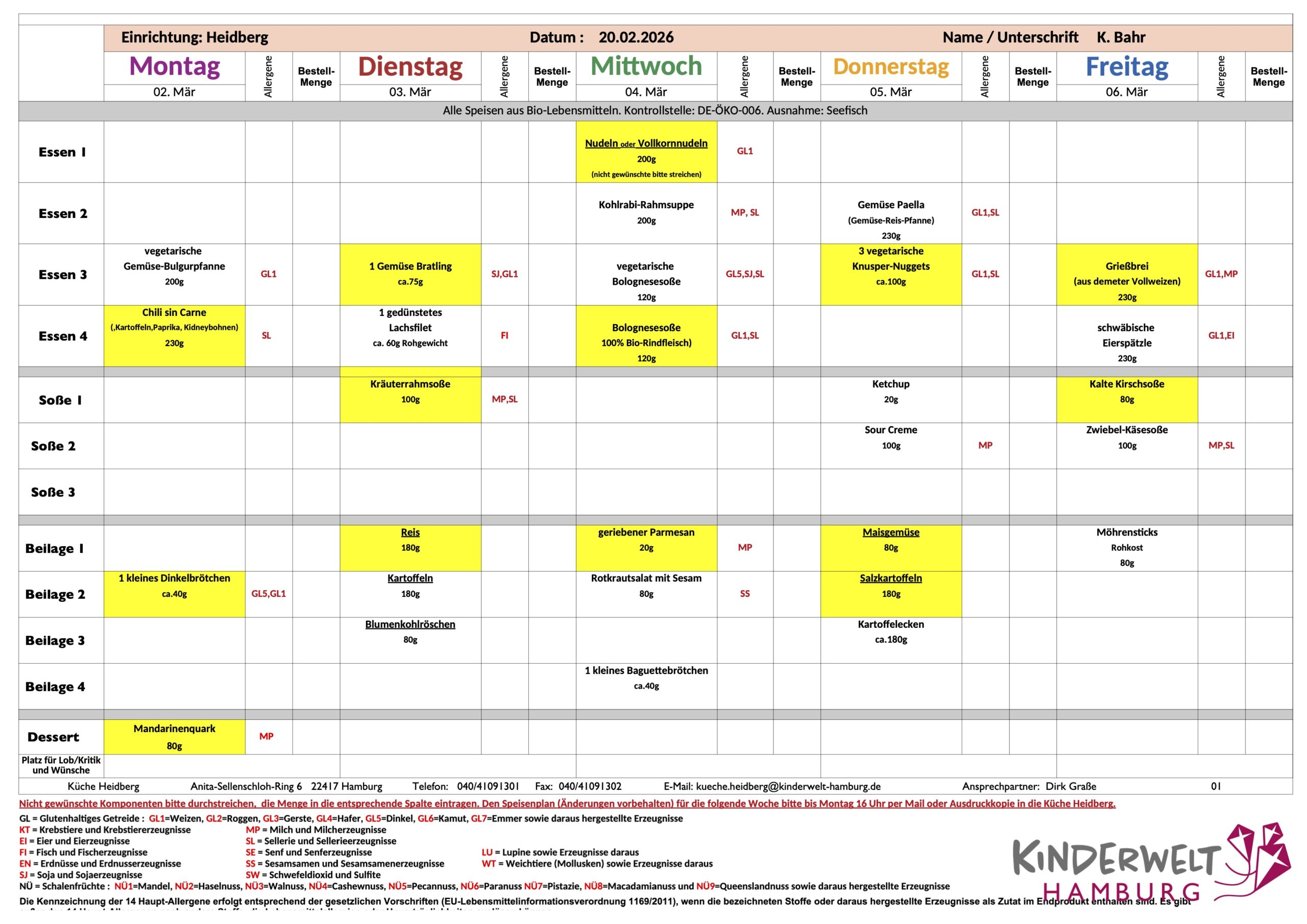 Unser Mittagessen: 2. bis 6.02.2026