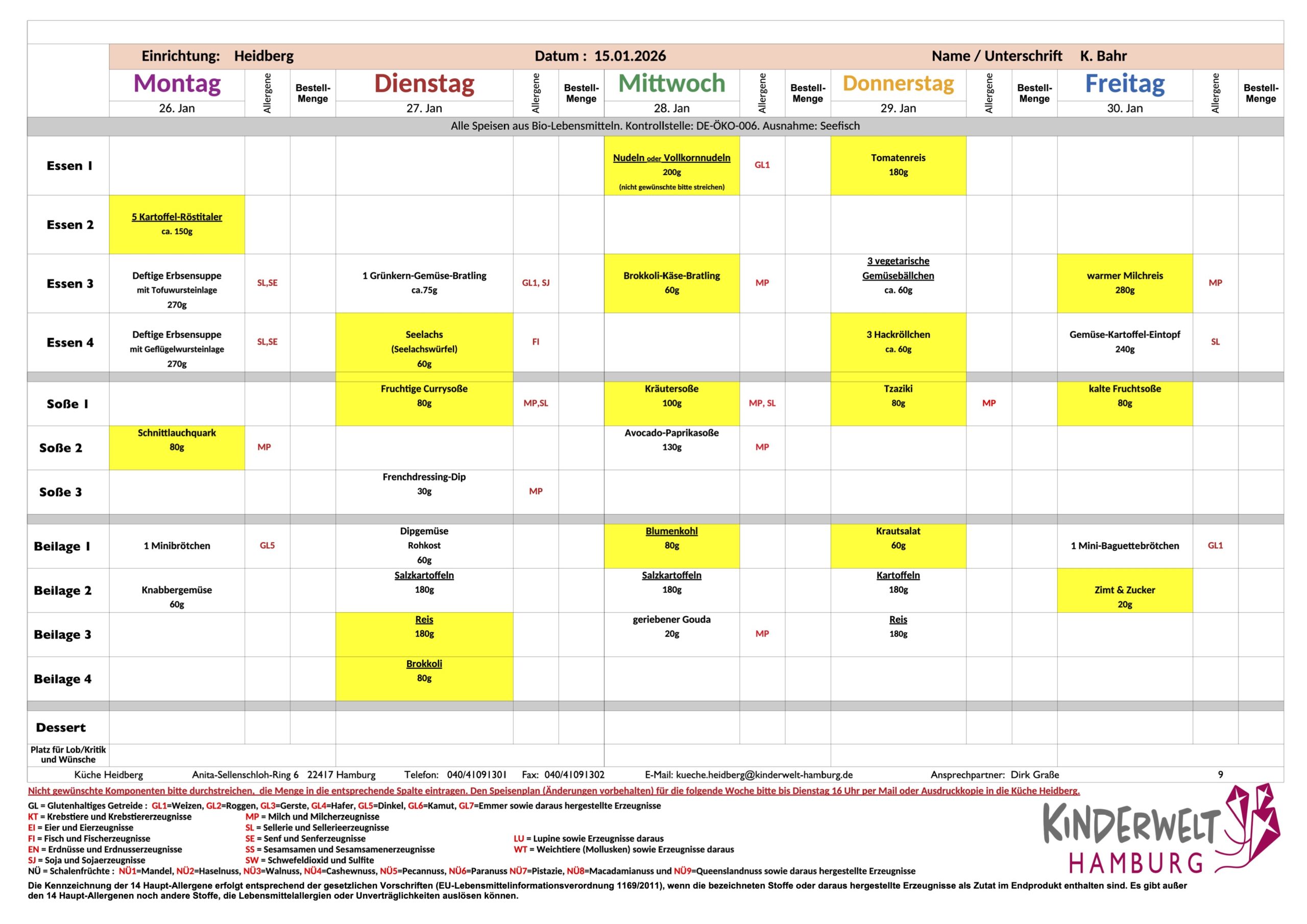 Unser Mittagessen: 26. bis 30.01.2026
